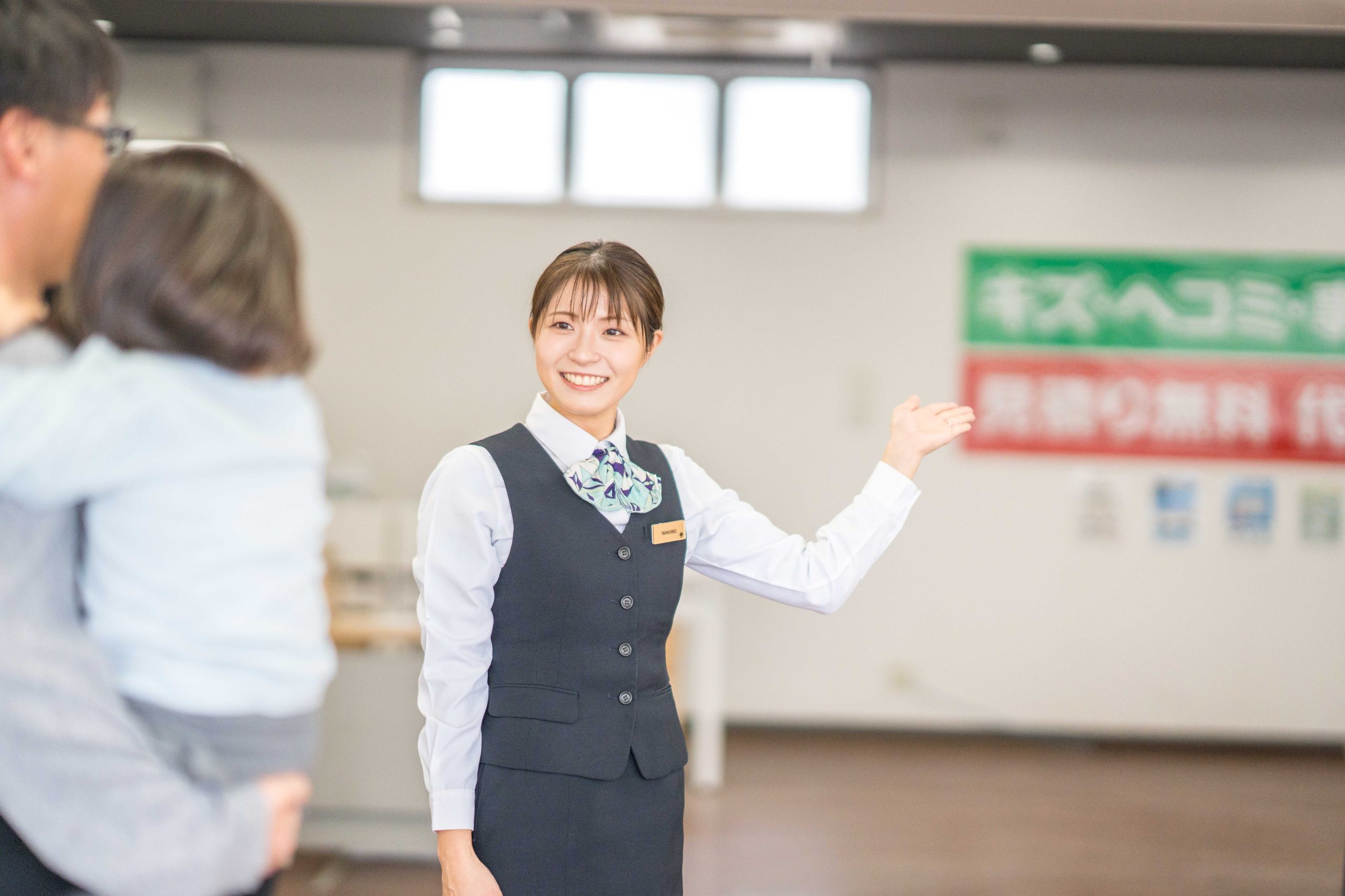 くるまのハヤシ倉敷店にご来店されたお客様のお出迎えをしていただくお仕事です!